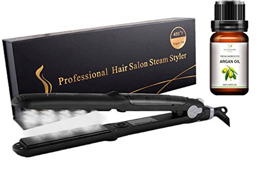Vakker Professional Hair Straightener, Steam Styler, Zero Damage, Ceramic Tourmaline Flat Iron Salon Heater, Bonus with Argan Oil