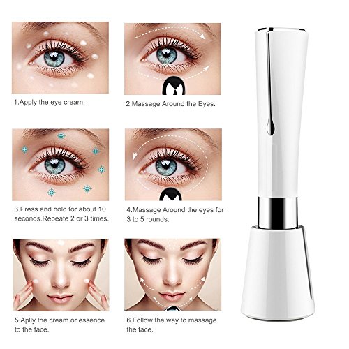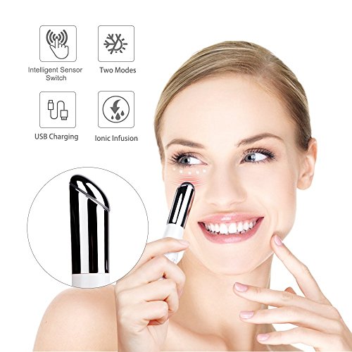 iRSE Sonic Vibration Eye Massager, Anti-Wrinkle Facial Massage Wand, Portable Skin Care Ionic Infusion, Rechargeable Device for Puffiness and Dark Circles (White)