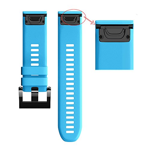 -. Feature : Using high quality soft silicone material,protects your smart watch from dirt and scratches and secure while running, dancing or working out, perfect for daily and nightly wear / Easy to assemble and remove through pins,size can be adjusted according to the circumstance of individual wrist, one size fits all / Multiple colors for choose,different colors express variety mood for everyday / 26mm width silicone band for garmin fenix 5X, pls kindly check your watch size before purchase. / Durable enough to avoid the slipping-off problem. Especially fit for sport.