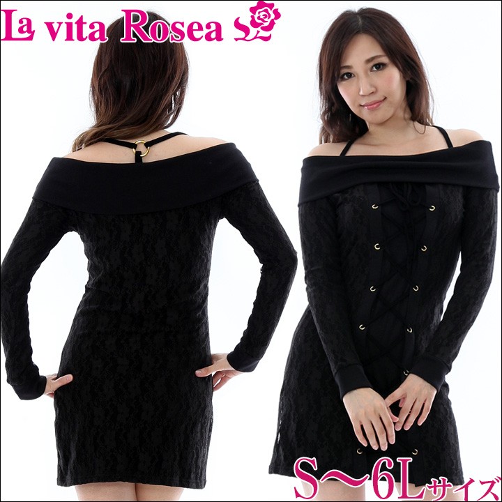 レースレイヤー編上オフショルワンピース(RW) 大きいサイズ 春 セクシー レディース ギャル服 ギャル 大人 13号 15号 17号 19号 LL 2L 3L 4L 5L 6L 6L
