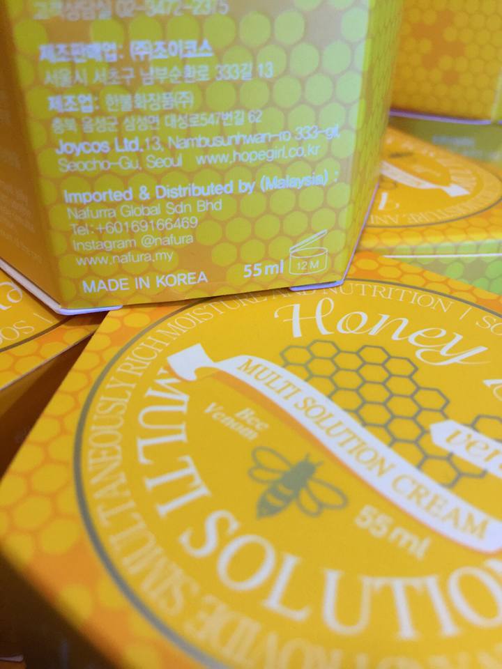 🐝 sesuai sebagai krim pelembab untuk pagi dan malam, mengandungi Madu, Bisa Lebah(5%) Collagen , Propolis, Vitamin C,Asid Hyaluronic . semua kandungan nye macam magik coktail untuk buat kulit kita lembab ,bermaya dan bersinar lepas pakai
