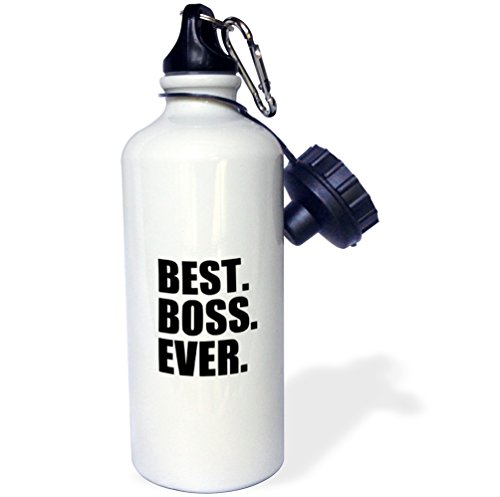 3dRose wb_151477_1 "Best Boss Ever-fun funny humorous gifts for the boss-work office humor-black text" Sports Water Bottle, 21 oz, White
