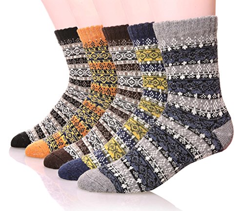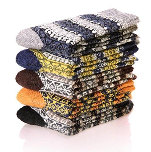 -. Binding : Apparel -. Brand : EBMORE® -. Department : mens -. Feature : COMFORT - Experience ultra-plush softness and flexibility with the perfect jacquard weave blend of Polyester 43%, Acrylic 40%, Wool 10%, Rabbit hair 5%, Spandex 2%. / CUSTOM TAILORED - EBMORE socks are designed to hug your toes, heels and arches without bunching, slipping or excess fabric. / STAY WARMER, LONGER - Each order comes with five pairs of our soft, comfort-fit socks to last you almost all week. / IDEAL SIZE - These crew-style socks come is a standard US size that fit shoe sizes from 6 to 12, so everyone can enjoy warm, toasty feet. / ADORABLE DESIGN - EBMORE socks in stylish, fun colors and feature beautiful hearts on them! -. IsAdultProduct : 0 -. ProductGroup : Apparel -. ProductTypeName : SOCKSHOSIERY -. Size : Free -. Title : EBMORE Men's Fashion P.R.Inted Winter Casual Wool Classic Crew Socks 5-Pack