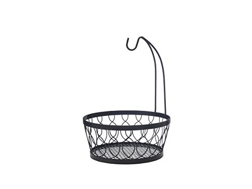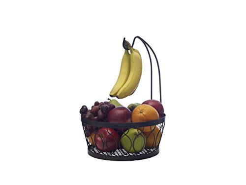- Fruit basket with banana hanger includes an 11-inch round fruit basket