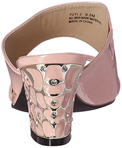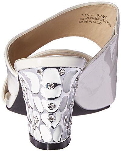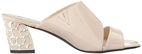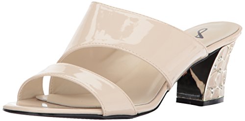 Product DescriptionFashionable patent slide covers the foot in perfect proportions. two banded slide is featured in patent finishes and cool warm tones that compliment skirts, slacks and shorts. stunning matching metallic accented heel.0