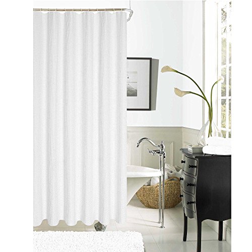 Bed Bath Outlet Hotel Collection Lurex Waffle shower Curtain 70" X 72" Inches Mildew and Mold Resistant (WHITE)