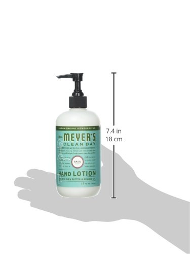 -. Binding : Health and Beauty -. Brand : Mrs. Meyer's Clean Day -. EAN : 0808124702479 -. Feature : Sweet almond oil and shea butter help to soften the driest hands / Moisturizing without being greasy or heavy feeling / Made with natural essential oils and plant derived ingredients / Made without Parabens & Phthalates, Formaldehyde, or Artificial Colors / Not tested on animals -. IsAdultProduct : 0 -. Label : SC JOHNSON -. Manufacturer : SC JOHNSON -. Model : 686591 -. MPN : 10808124702476 -. NumberOfItems : 1 -. PackageQuantity : 1 -. PartNumber : 10808124702476 -. ProductGroup : Health and Beauty -. ProductTypeName : HEALTH_PERSONAL_CARE -. PublicationDate : 2016-01-16 -. Publisher : SC JOHNSON -. ReleaseDate : 2016-01-16 -. Size : 12 oz. -. Studio : SC JOHNSON -. Title : Mrs. Meyer's Clean Day Hand Lotion, Basil, 12 Ounce -. UPC : 808124702479