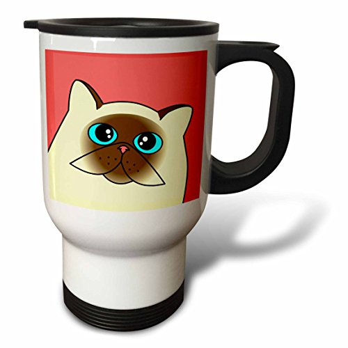 3dRose The Curious Cat Himalayan with Blue Eyes Pink Travel Mug, 14-Ounce