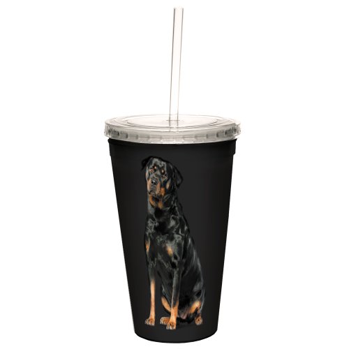 Tree-Free Greetings CC35110 I Heart Rottweilers Artful Traveler Double-Walled Cool Cup with Reusable Straw, 16-Ounce
