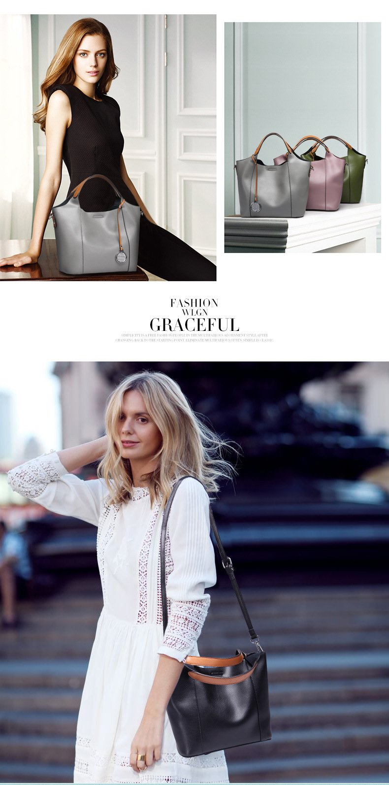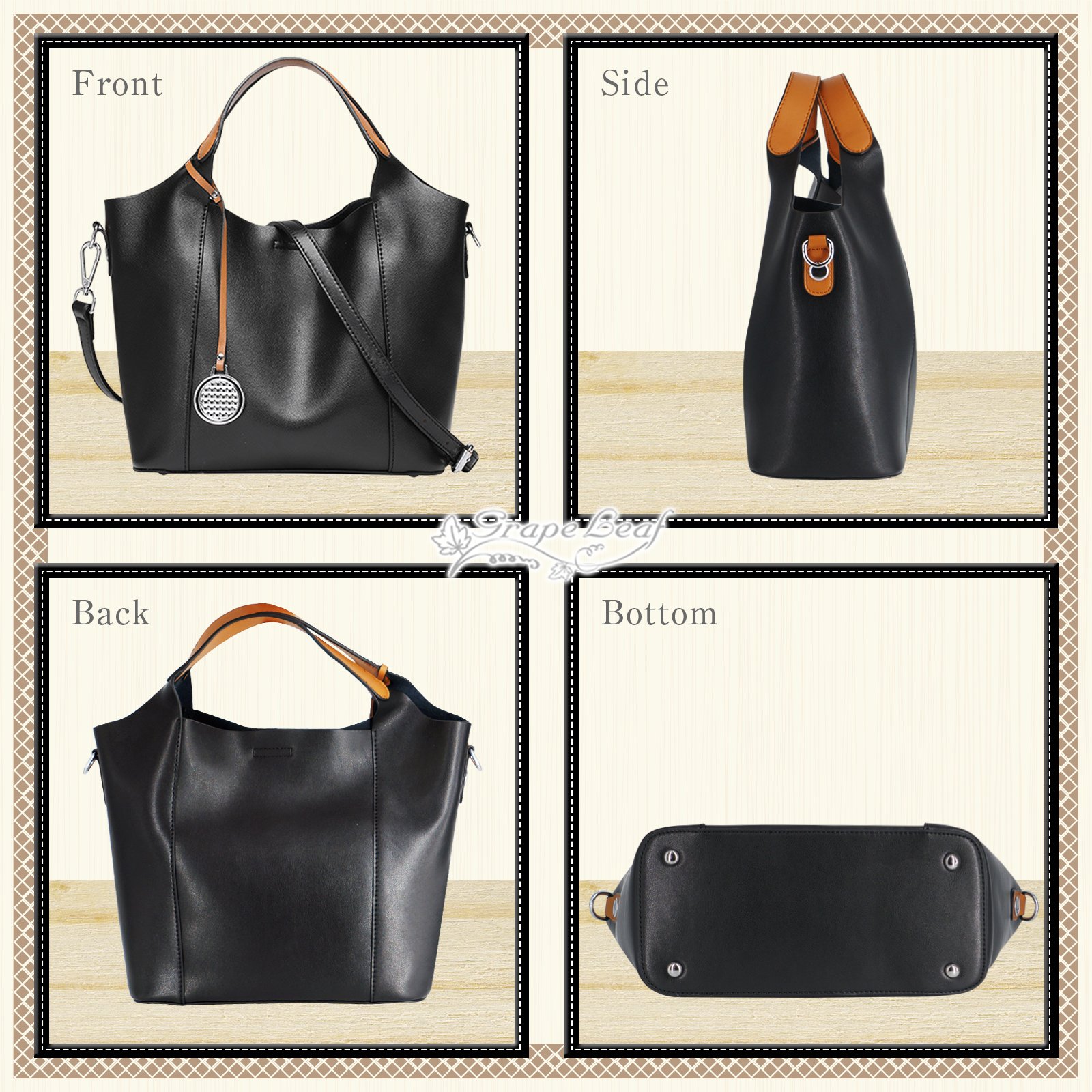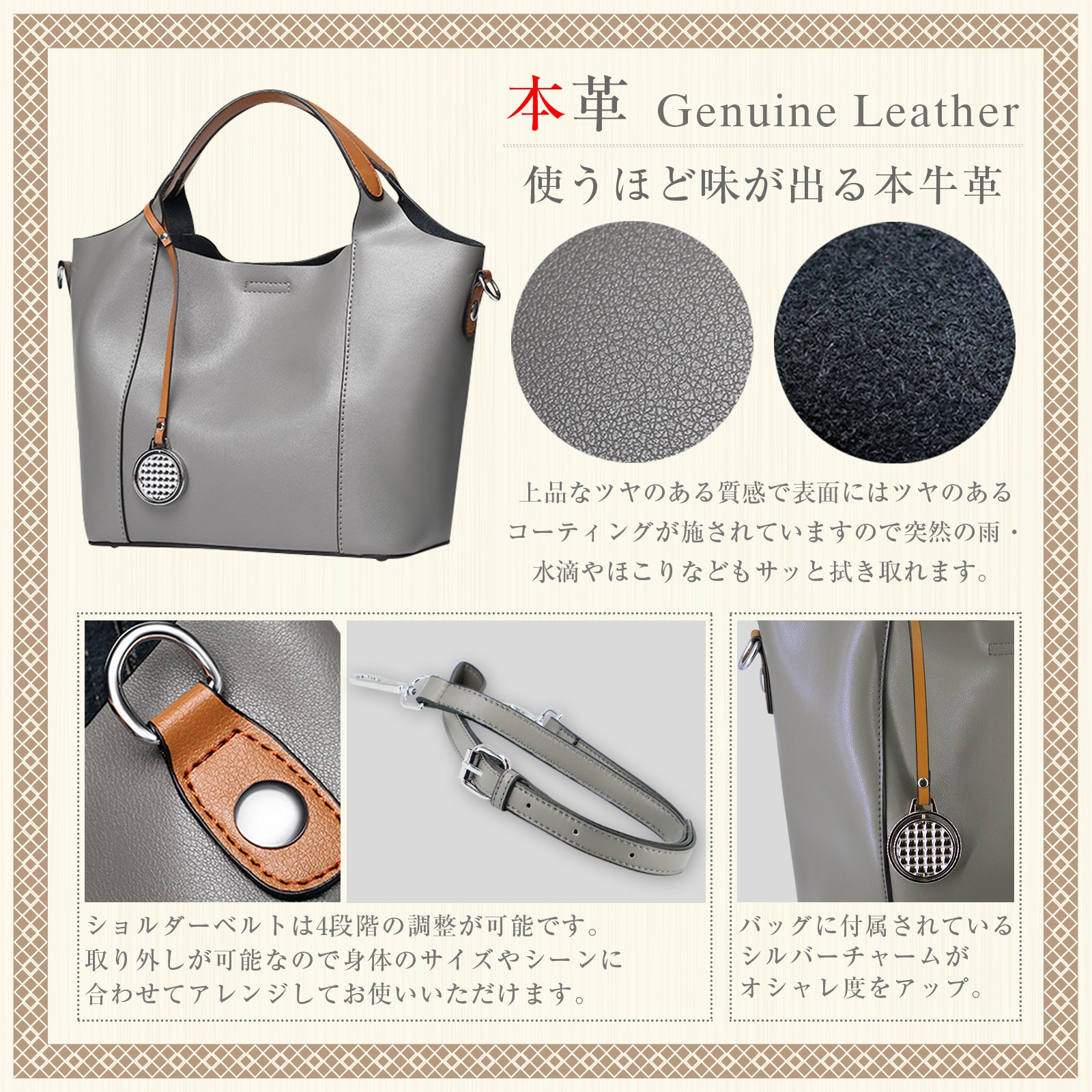 · Silver charm attached to the bag improves fashionable degree