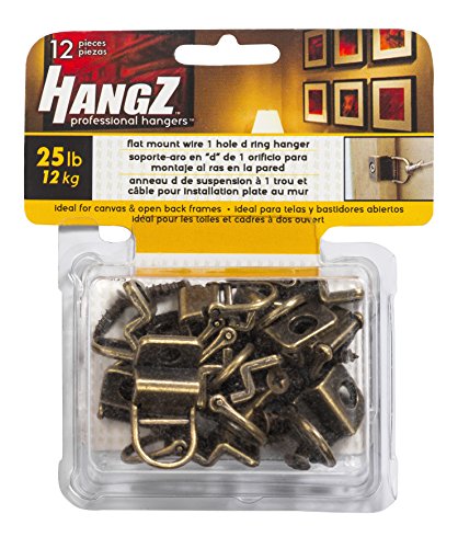 HangZ 11005 Flat Mount Wire 1-Hole D-Ring Picture Hanger Value Pack, 25lb, 12-Piece