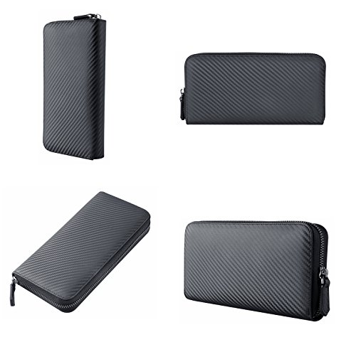 NapaWalli Womens Luxuary Genuine Leather Clutch Wallets Purses With Carbon Fiber Texture