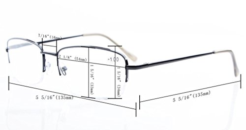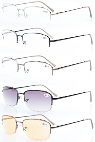 -. Brand : Eyekepper -. Feature : PRODUCTS DIMENSION-Frame material: Metal,Lens width: 2 1/8" (54mm),Frame width: 5 5/16"(135mm),Lens height: 1 5/16" (33mm),Frame height: 1 5/16" (34mm),Bridge (DBL): 7/16"(16mm),Temple length: 5 5/16"(135mm),Spring hinge: Yes,Lenses: Aspheric,Head size: Medium to wider / EYEKEPPER HALF-RIM READING GLASSES-the pupil distance(PD) is 59-63mm,the deviation for pupil distance(PD) less than 2mm,the deviation for strength less than 0.02,the deviation for lenses's horizontal line less than 1mm / EYEKEPPER SPRING TEMPLE READING GLASSES-5 pack at 1 Low Price,Sets come in 1 power of your choice. These are not mixed powers.Acrylic Lens and Optically Correct.Grey tinted lenses great for outdoor reading,Amber lenses for computer,UV Protection, Anti Glare,Anti Blue Rays / QUALITY METAL FRAME -FDA Registered Reading Glasses and Eyewear,Accord with ANSI Z80.3-2010,Accord with BS EN ISO 12312-1:2013 and EN14139:2010,Accord with AS/NZS 1067:2009,Top quality metal frame,lenses and have spring-loaded hinges / LIFETIME BREAKAGE WARRANTY&30 DAY MONEY BACK GUARANTEE: In case any broken problem happens, contact the seller of Eyekepper without hesitation to solve the problem until satisfaction. Eyekepper provides lifetime after sale service for all Eyekepper reading glasses. Customers can return and get refunded for any reason. You have no risk to try -. Label : Wenzhou Cofly Optical Co.,Ltd -. Manufacturer : Wenzhou Cofly Optical Co.,Ltd -. ProductGroup : Health and Beauty -. ProductTypeName : PERSONAL_CARE_APPLIANCE -. Publisher : Wenzhou Cofly Optical Co.,Ltd -. Studio : Wenzhou Cofly Optical Co.,Ltd -. Title : 5-pack Eyekepper Metal Half-rim Spring Hinges Reading Glasses Include Computer Readers