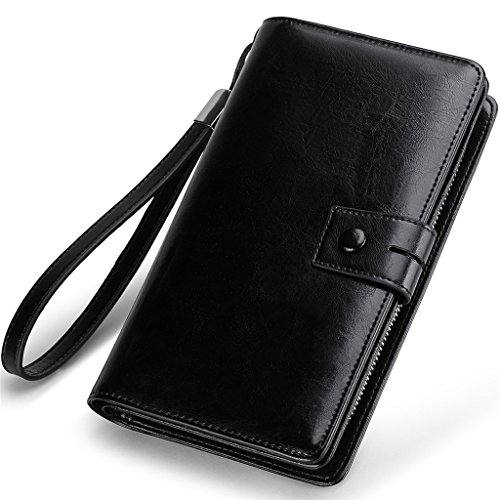 - Genuine Leather - This women's wallet is made of the top grade Oil Wax Genuine Leather, feels luxury and comfortable. Looks even better after using for a long time. Wallet Dimension: 8"L x 4.7"W x 1.2"H , Checkbook Holder Dimension: 7"L x 3.5"W x 0.2"H
