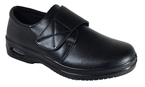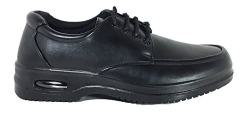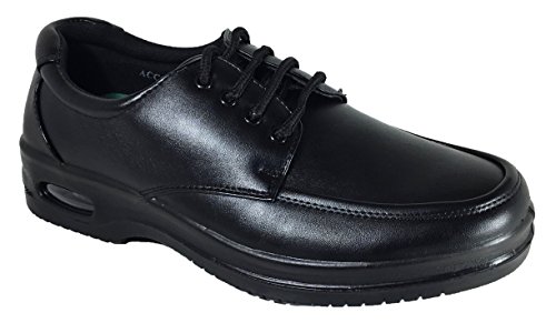 -. Binding : Apparel -. Brand : Brix -. Department : mens -. Feature : Synthetic / All Men Made Material / Rubber Sole with Air / Lightly Cushioned Insole / Slip On/Lace Up/Velcro -. ProductGroup : Shoes -. ProductTypeName : SHOES -. Title : Mens Oil Resistant Anti Slip Restaurant Working Shoes With Air (Acco))