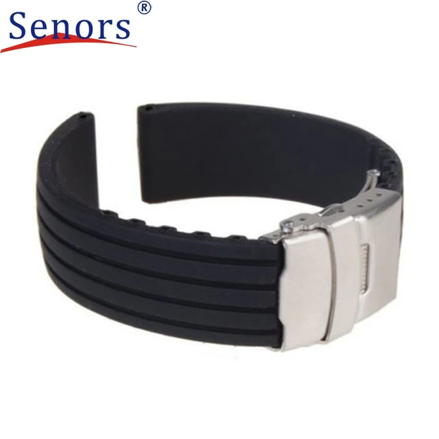 매력적인 뜨거운 판매 블랙 컬러 실리콘 고무 시계 스트랩 밴드 배포 버클 방수 AG25