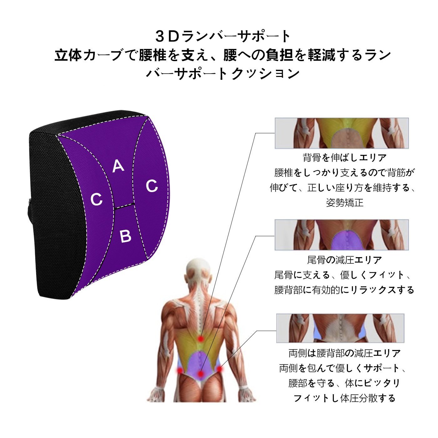 Lumbar pillow of 3D stereoscopic design supports the back muscles properly when the position gradually loses its posture if it keeps the same posture for a long time in office work and long time driving,