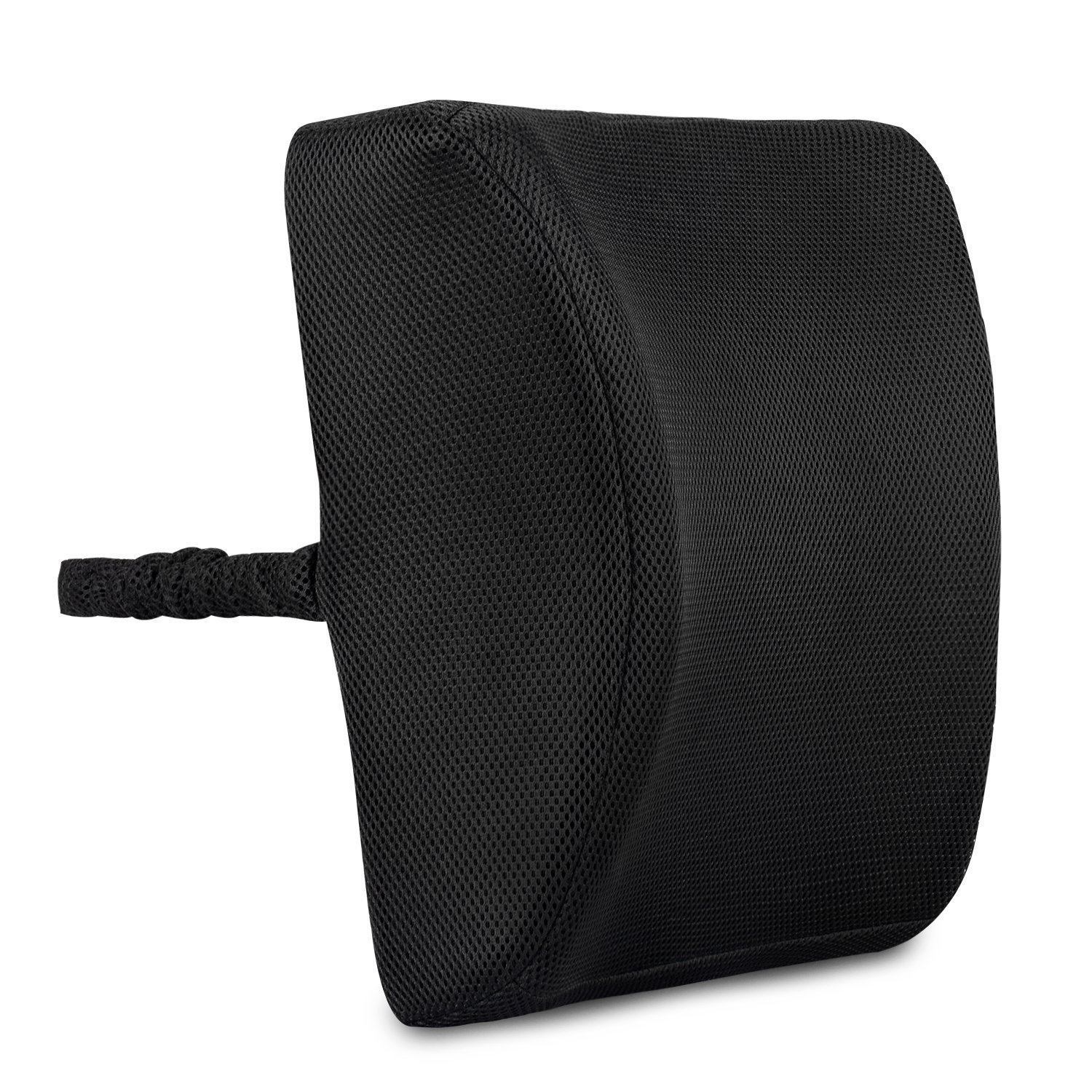 An ergonomic form firmly supports the S-shaped curve of the lumbar spine.