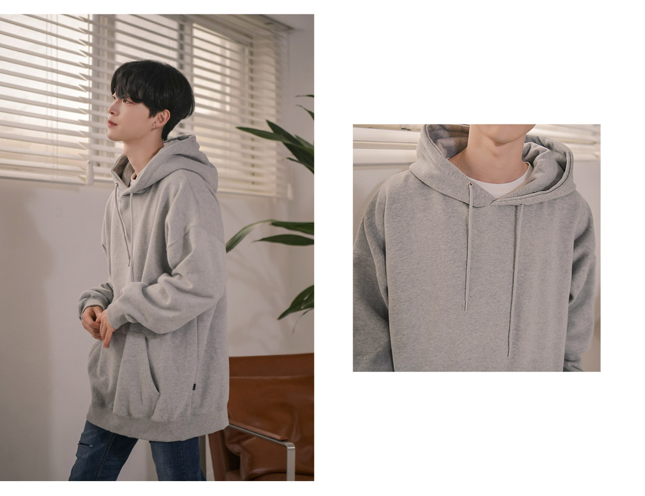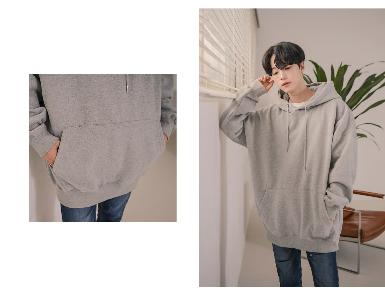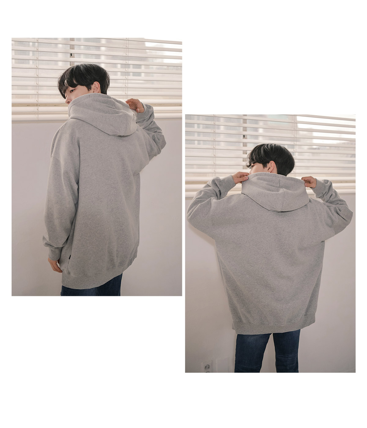 군더더기 없이 베이직한 디자인의 기본 후드티.