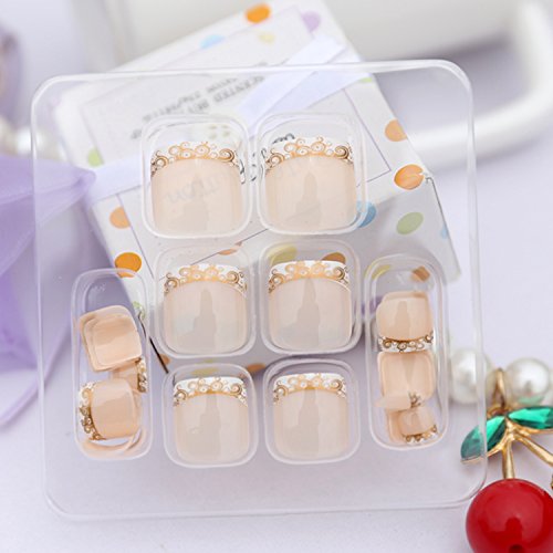 -. Feature : French Toenails Full Cover False Toenails / Material : Acrylic / Size : 12 Sizes (Suitable for Most Ladies) / Designed : Golden Spray / Quantity : 24 Pieces