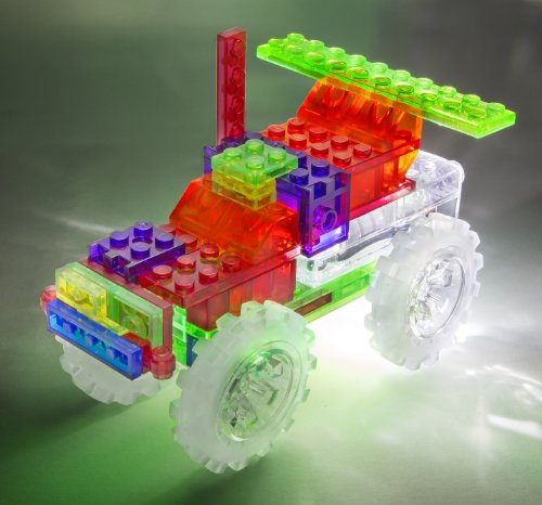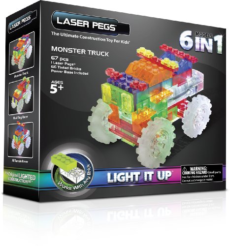 Crush the competition with this powerful 6 in 1 Monster Truck kit! Get behind the wheel of some bad to the bone models like the Monster Truck, Pro Stock Puller, Rock Climber, and many more. Can the competition see you coming? No. Then light up your creations with the exclusive Zippy Do power base so they can see you coming a mile away! Includes Zippy Do Power Base, 1 Laser Peg, and 66 Tinted Construction Bricks.Feature