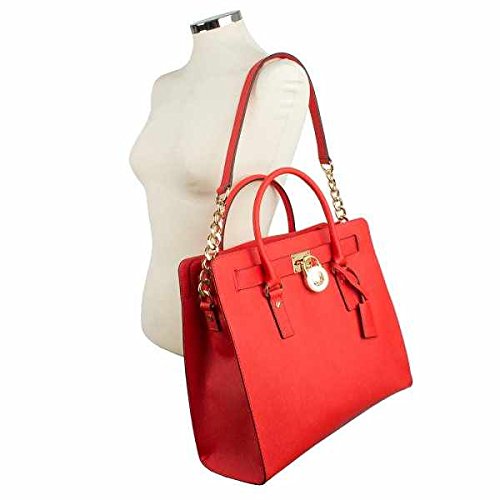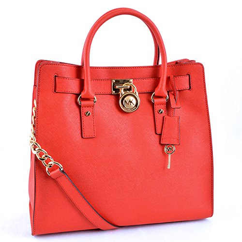-. Title : Michael Kors Hamilton NS North South Large Mandarin Orange-Red Saffiano Leather Tote Handbag
