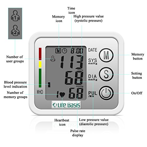-. Title : LifeBasis Basic Handgelenk Blutdruckmessgerät LCD Blutdruck Messgerät , 2 Benutzer Modi