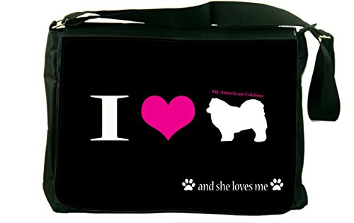 Studio : Rikki Knight LLC Publisher : Rikki Knight LLC Binding : Office Product Product Description Whether from home to the office, on a business trip or to school, the I Love My American Eskimo Dog laptop bag notebook bag messenger bag school bag keeps you comfortable and your cargo safe and sound - this bag features pockets on the outside below the flap for your cellphone, pens, iPod, notebook etc. And also a zippered compartment on the inside, with plenty of space to store your textbooks, folders, files, etc. And up to a 14 inch laptop (laptop sleeve sold separately) - the vibrant image on the front is professionally printed and will not fade or peel with time and this bag will surely be an eye catcher wherever you go with it. Disclaimer: all images are printed directly into the material - the Texture of the image will always be a flat surface. Any images that appears to be 3D, textured, or glittery are flat printed images. 0