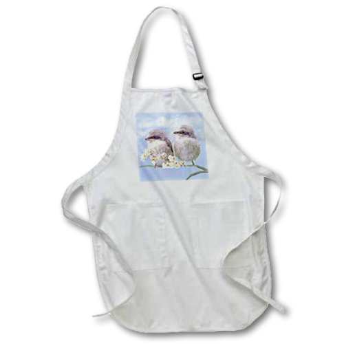 3dRose LLC Fledgling Baby Sparrows Learning to Fly Digital Oil Painting Medium Length Apron with Pouch Pocket, 22 by 24-Inch