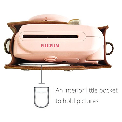Put over 10 mini photos in LITTLE POCKET inside with the camera and make sure your mini photos are perfect.The strap is brilliant and makes carrying the camera easy.