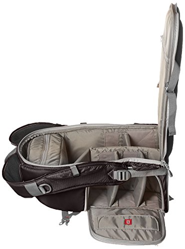 -. Feature : 写真機材をハンズフリーで運べる、コンパクトで軽量なカメラバックパック。 / レンズを着けたままのデジタル一眼レフカメラ1台と、レンズその他のアクセサリーを最大3つまで収納できます。 / 裏側は全面が開き、内部に簡単にアクセスできます。裏側とショルダーストラップにはパッド入り、さらにチェストストラップもついて快適にフィットします。 / 左側のメッシュポケットにはバッテリーや充電器を収納可能。ペンスロット、キークリップ、メモリーカード専用ポケットあり。 / 右側のポケットには最大3つのレンズを収納でき、取り出しも簡単。カメラやアクセサリーを取り出しやすいよう内部スペースの仕切り方を変更できます。トライポッドやモノポッドを固定できるループが前面にあります。 / レインカバー付属。