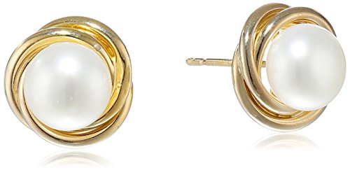 -. Title : 10k Yellow Gold 7-8mm White Button Freshwater Cultured Pearl Knot Stud Earrings