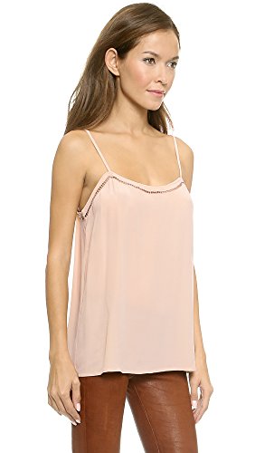 Delicate square cutouts trim the top of this Equipment blouse, adding charming detail. A flared hem lends a breezy drape. Adjustable spaghetti straps. Sleeveless.