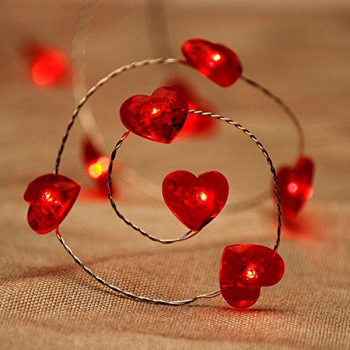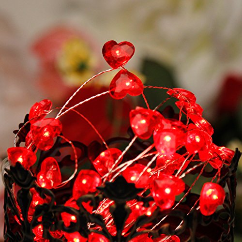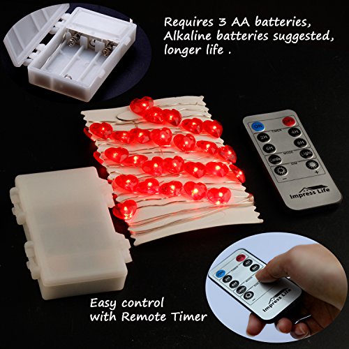 10ft 50 LED Love Red Heart String Lights, Impress Life Valentines Day Decoration, Indoor Outdoor Decorative Lights Battery Powered for Patio Furniture Garden Party Xmas Tree Wedding Home School Decor