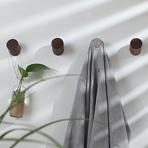 Natural Wooden Coat Hooks, Wall Mounted Single Wall Hook Rack, 2Pcs Decorative Craft Clothes Hooks (Black Walnut)