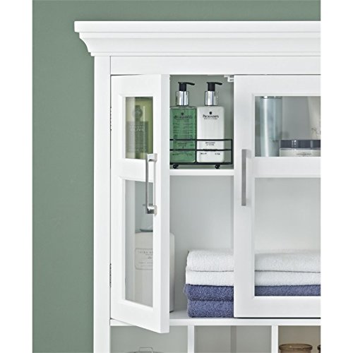 Studio : cCT Global Sourcing Publisher : cCT Global Sourcing Product Description Like to have a little more space in your bathroom this stylish wall cabinet gives you just that, with two doors opening to an adjustable shelf and three open cubbies. Fill it up with all of the toiletries that you normally have on the counter and your bathroom will look uncluttered and spacious. 0