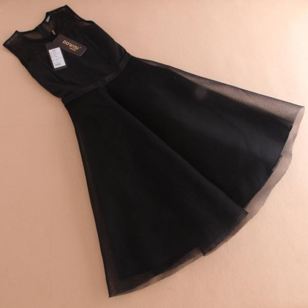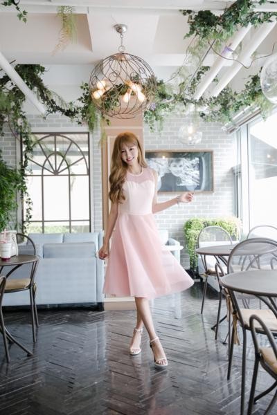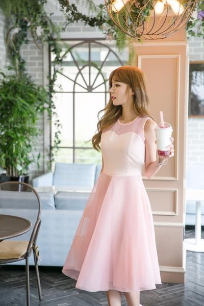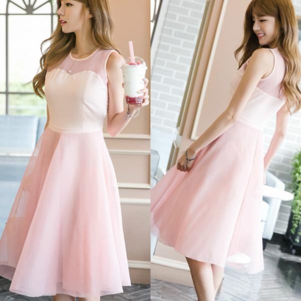キュート チュールレース Aライン ノースリーブ ワンピース