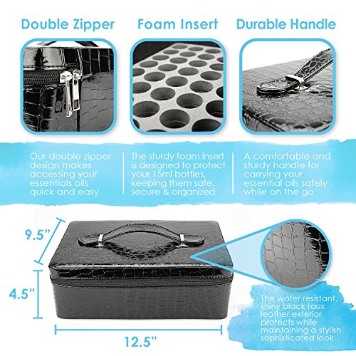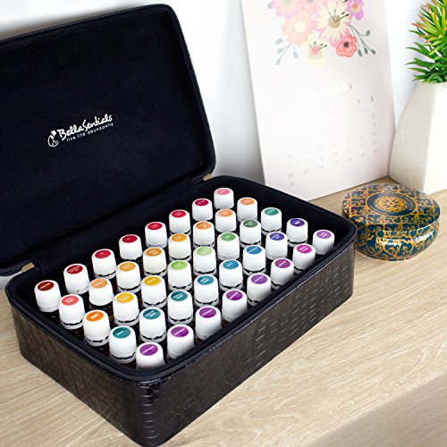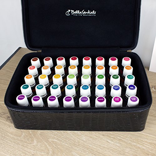 BellaSentials Essential Oil Carrying Case with Foam Insert Hard Cover Holds 40 15ml Aromatherapy Bottles Perfect for Travel Black