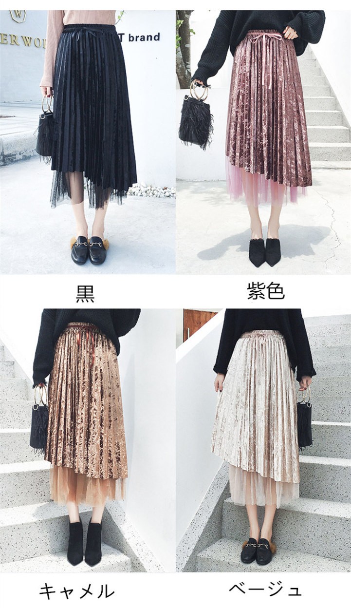 スカート ミモレ丈 レディース 秋 冬 フレアスカート ロングスカート Aラインスカート プリンツスカート チュールスカート ベロア リボン レース ドッキング Aライン ロング丈 フレア 体型カバー おしゃれ 着痩せ 可愛い 20代30代40代★素材:ポリエステル ★ウエストゴム:あり ★生産国:中国 ★カラー:黒/紫色/キャメル/ベージュ(写真参考)※お客様ご使用のPC環境により商品画像のカラーが多少異なる場合があります。仕入時期により多少デザインなど異なる場合があります。ご了承ください。★サイズ(CM):F:ウエスト60-100 着丈75※サイズは人の手によって測っているため、1-3cmの誤差がある場合がございます。予めご了承下さいませ。