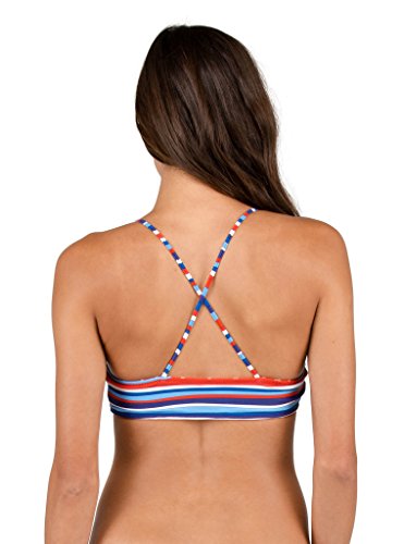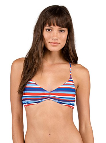 -. Binding : Apparel -. Brand : Volcom -. Department : womens -. Feature : Contrast over the shoulder straps / No cups / Metal logo badge at wearer's left center front / Reversible styling / V neckline with shirring -. Label : Volcom Juniors Swimwear -. Manufacturer : Volcom Juniors Swimwear -. Model : O1021704 -. PackageQuantity : 1 -. ProductGroup : Apparel -. ProductTypeName : SWIMWEAR -. Publisher : Volcom Juniors Swimwear -. Studio : Volcom Juniors Swimwear -. Title : Volcom Women's Pride Americana Reversible V Neck Bikini Top