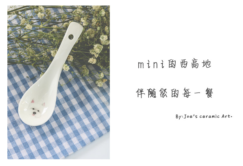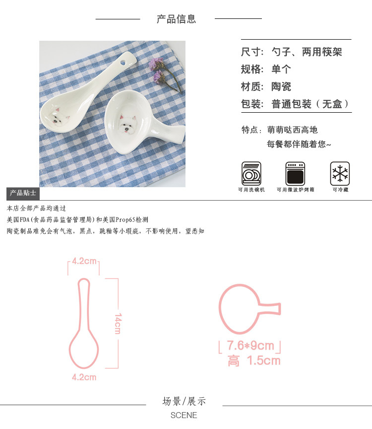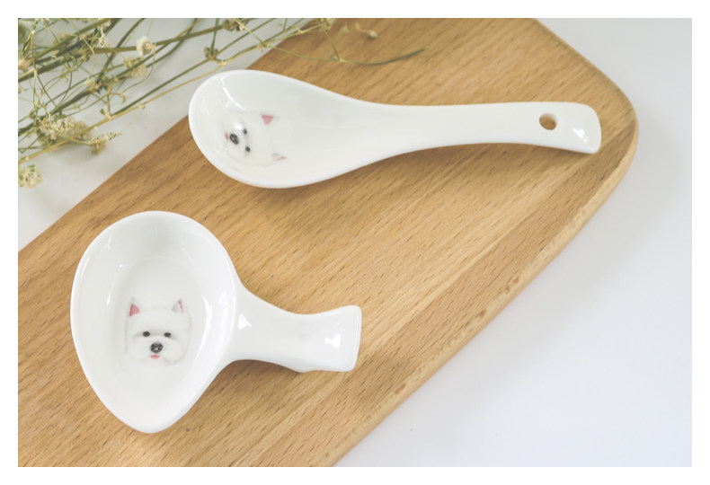 西高地系列陶瓷勺子韩式创意动物可爱勺子狗狗多用途筷架饭勺餐具