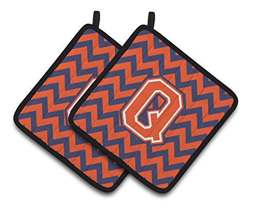 Caroline's Treasures Letter Q Chevron Orange & Blue Pair of Pot Holders CJ1042-QPTHD, 7.5HX7.5W, Multicolor