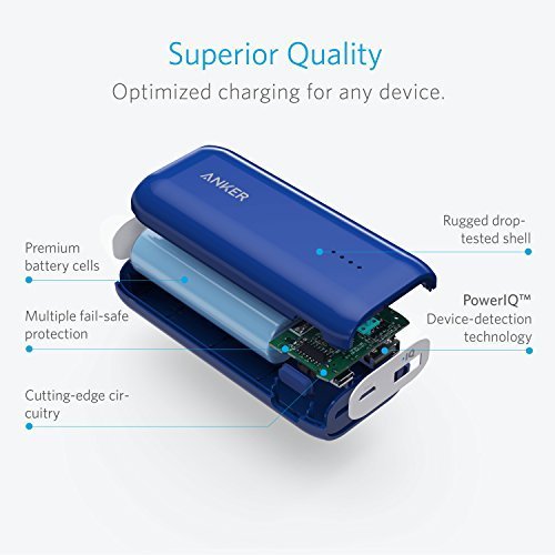 Anker Astro E1 5200mAh Candy bar-Sized Ultra Compact Portable Charger (External Battery Power Bank) with High-Speed Charging PowerIQ Technology (Blue)