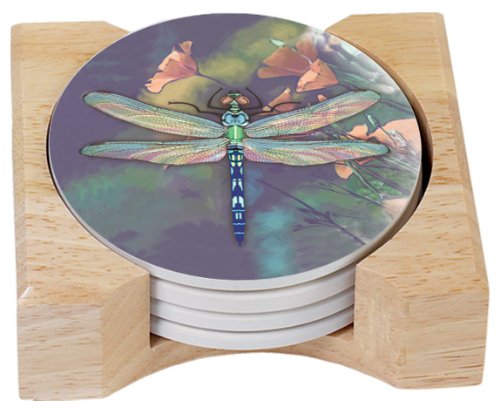 - Coasters are natural stoneware with decorative transfer print- holder is made of durable rubberwood with a clear varnish finish