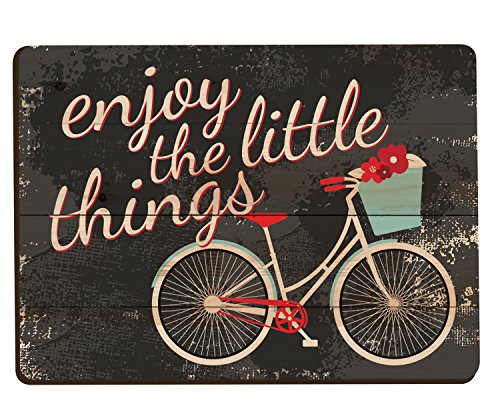 Enjoy The Little Things Retro Bicycle Distressed Wood Look 3 x 4 Inch Wood Lithograph Magnet
