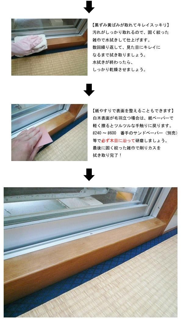 | 汚れやすくデリケートな白木の柱やなげし、床、天井等の汚れ落としや手垢、との粉等の汚れ落としに。和室、窓枠、敷居、障子、柱などに最適☆素材に優しい還元剤配合で、日焼け・黒ずみ対策にも!! |