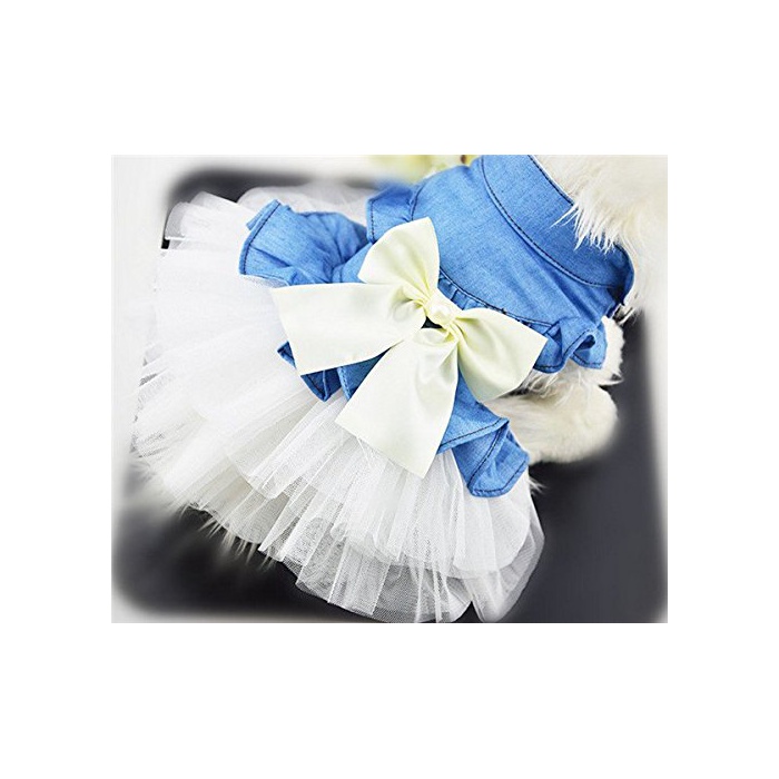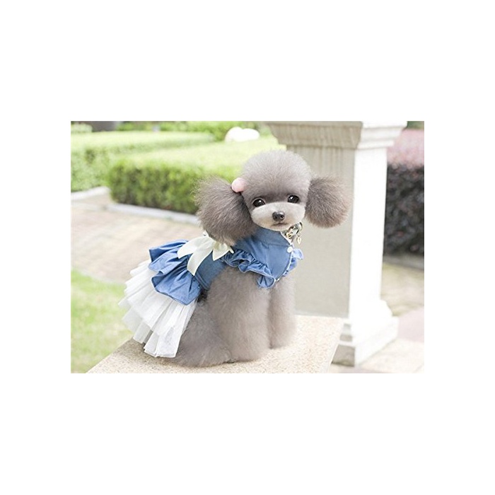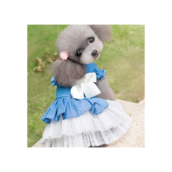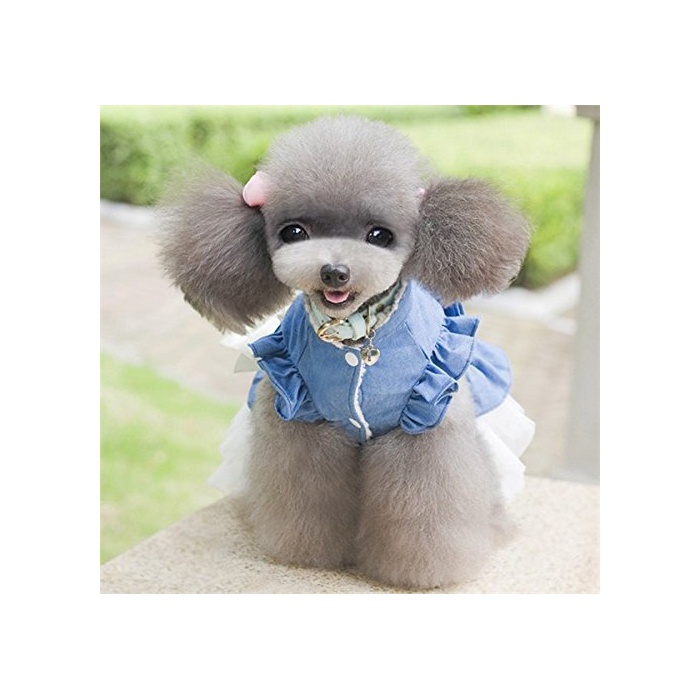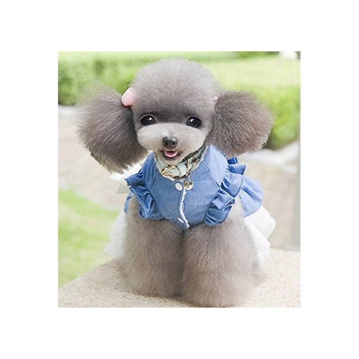 Beidu 강아지 옷 도그 웨어 원피스 데님 레이스 스커트 갈아 입기 대형견/중형견/소형견 산책하러 갈 것이 도그 웨어 강아지 옷 XS 사진색
