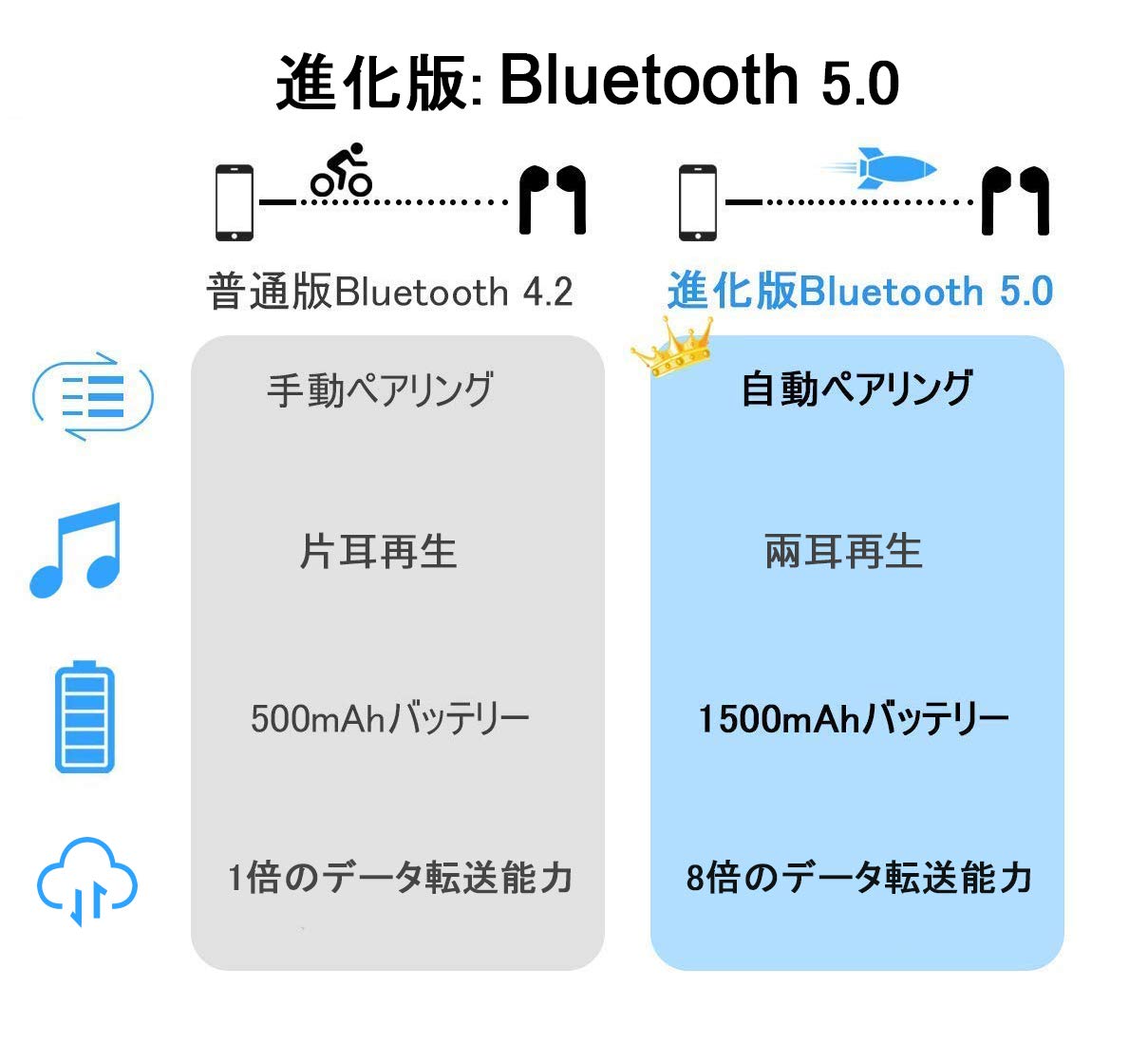 - 【大容量バッテリー】1500mAhのバッテリーケースを付いていて、イヤホンを約20回充電可能で、モバイルバッテリーとしてもお使いいただけます。先進的なBluetooth 5.0採用し、bluetooth対応するスマホ、タブレット、iPhone、iPad、Androidなどに適応。
