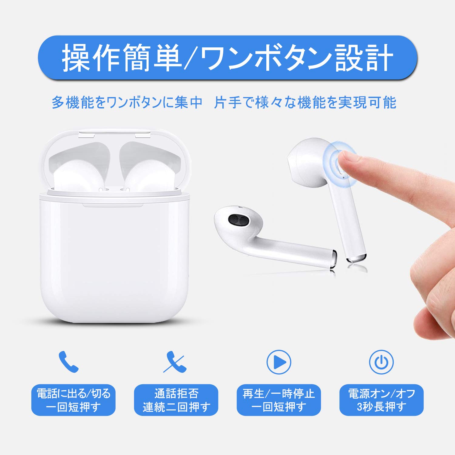 - 【自動ペアリング&簡単操作】充電のケースから出し入れするだけで電源ON/OFFの切り替えと、端末とのペアリング設定モードが自動で起動します。2度目からは自動で機器に接続します。ワンボタン設計で片手でも操作可能です。オンボタンで音楽再生/一時停止、通話開始/終了/拒否/リダイヤルなどの操作を全て実現可能です。