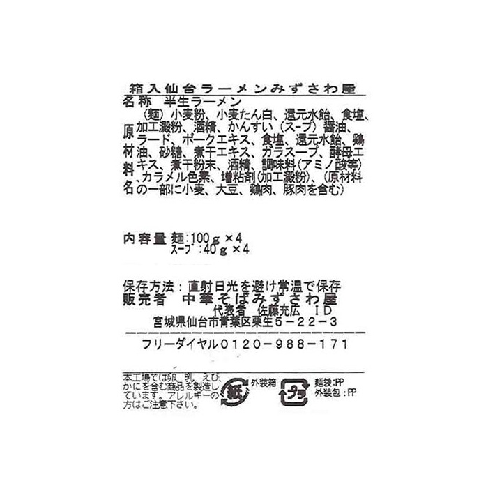원본상품명: アイランド食品 箱入仙台ラメンみずさわ屋 4食